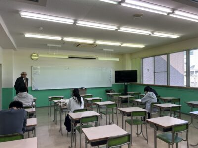 体験授業では、「数学Ⅰ」と「公共」の2科目が実施され、中学生は緊張しながらも授業の雰囲気を感じていました。