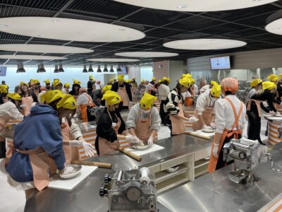 池田市にあるカップヌードルミュージアムにて、チキンラーメン手作り体験を行いました。